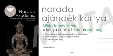 A kártya a Narada Védikus Akadémia bármely előadásán,képzésén, szemináriumán és jóga óráin beváltható, illetve bekompenzálható.