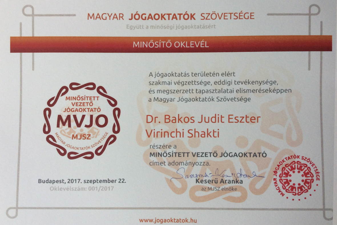 A Narada Védikus Akadémia vonatkozó hazai jóga oktató képzés minősítése az MJSZE-nél: